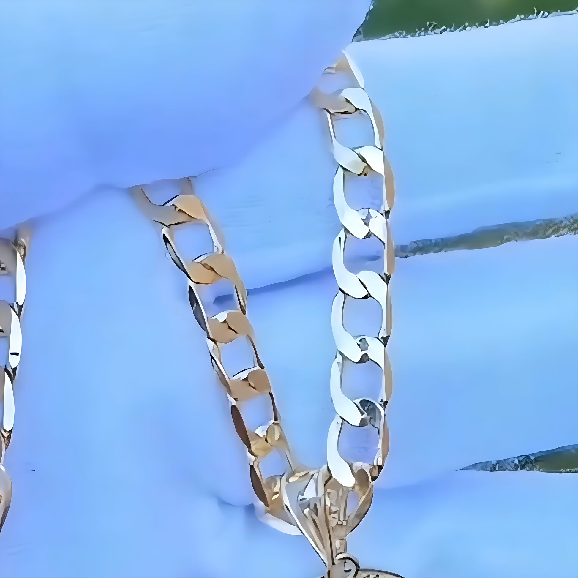 - Cadena estilo cuban curb (eslabones sólidos y elegantes) que aporta presencia sin sacrificar comodidad.